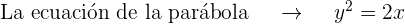Como su vértice es el origen, y su eje coincide con el eje OX del plano, su ecuación es de forma reducida, en particular es