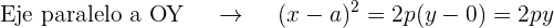 así que el eje de la parábola es paralelo al eje OX. Además, el coeficiente que acompaña al término no cuadrático (en este caso la