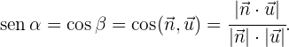 cuyas componentes corresponden a los coeficientes que acompañan a las variables en la ecuación del plano. Para calcular el ángulo seguimos la fórmula de arriba