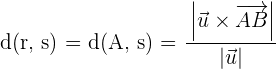 Teniendo en cuenta el volumen es el valor absoluto del producto mixto de los tres vectores y el área de la base es el producto vectorial de los vectores directores de las rectas, la altura, es decir, la distancia entre los dos puntos es igual a: