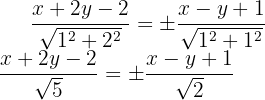 La teoría para el calculo de la ecuación de la bisectriz la puede encontrar aquí.