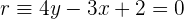 – Hallar la ecuación de la recta en su forma simétrica que tiene pendiente igual a 3/2 y que intersecta al eje «y» en (0.2)