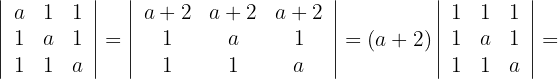 En el determinante de la matriz de los coeficientes sumamos a la primera fila las otras dos y posteriormente sacamos factor común.