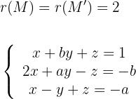 Hallar el valor de los parámetros a y b para que la recta sea coincidente con el plano