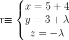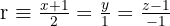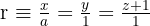 Primero, podemos reescribir la ecuación de la recta r, como la intersección de dos planos: