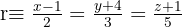 Las ecuaciones continuas de la recta r se pasan a implícitas, y éstas junto a la ecuación del plano forman el sistema: