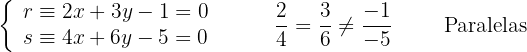 Las rectas 1 y 4 son coincidentes , porque todos sus coeficientes son proporcionales: