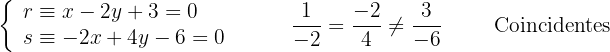 Dos rectas son coincidentes si tienen todos los puntos son comunes.