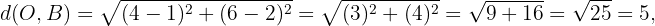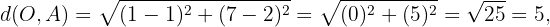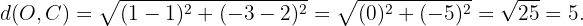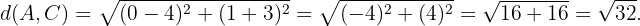 deben ser iguales. Comprobemos esto utilizando la fórmula de la distancia entre dos puntos.