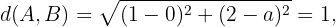 El valor de esta fórmula puede ser obtenido usando el Teorema de Pitagoras. Para ello, en la figura consideramos un tercer vértice