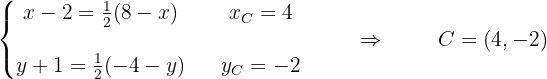 Las coordenadas de los extremos del segmento AB son: A (2, −1) y B(8, −4). Hallar las coordenadas del punto C que divide al segmento AB en dos partes tales que AC es la mitad de CB.