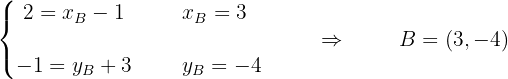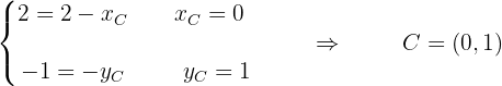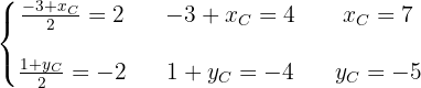 Si A(−3, 1), hallar las coordenadas del punto C, sabiendo que B(2, −2) es el punto medio de AC.