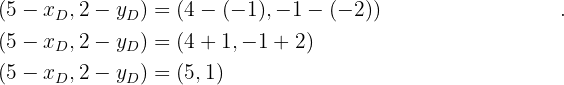 Calcula las coordenadas de D para que el cuadrilátero de vértices: A(−1, −2), B(4, −1), C(5, 2) y D; sea un paralelogramo.