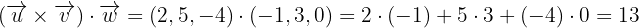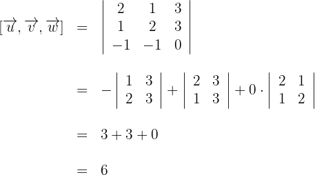 1Calculamos el determinante formado por los tres vectores