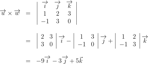 1Calculamos los productos vectoriales empleando la definición y resolvemos los determinantes de