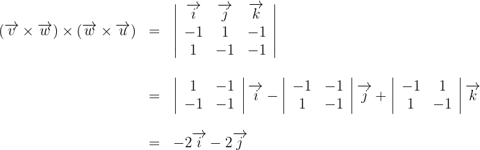 2Calculamos los productos vectoriales empleando la definición y resolvemos el determinante de