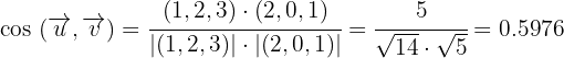 5Calculamos el coseno del ángulo formado por los vectores
