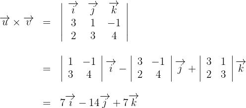 2Calculamos el producto vectorial empleando la definición y resolvemos el determinante de