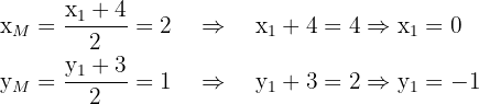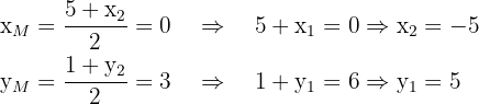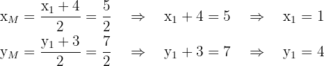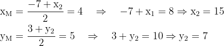 Tenemos un punto B y las coordenadas del punto medio, con esto y haciendo uso de la formula del punto medio calculamos el punto faltante.