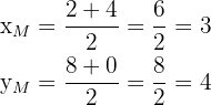 Nuevamente utilizando la formula del punto medio, tenemos que las coordenadas son