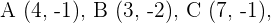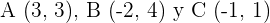 Notemos que estos tres punto nos forma un triángulo y al hallar los punto simétricos obtendremos el triángulo simétrico. Dado que son punto simétricos respecto al origen entonces tenemos que sus puntos simétricos no son mas que los punto con coordenadas opuestas de los punto originalmente dados,
