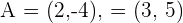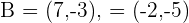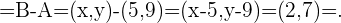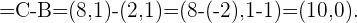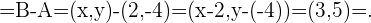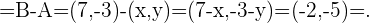 Para hallar el otro punto que determina el vector generado por estos dos puntos debemos resolver dos ecuaciones. Esto significa que restamos componente a componente y luego igualaremos las componente de nuestro resultado a las componentes que nos dan. Dado que buscamos el punto , obtenemos las siguientes ecuaciones,