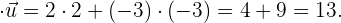Dado que conocemos las componentes de los vectores, entonces aplicamos la forma(1) para calcular el producto escalar: