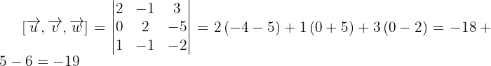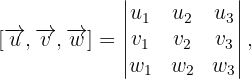 Un método útil para realizar el cálculo del producto mixto consiste en hacer un arreglo matricial con las coordenadas de los vectores y calcular su determinante: