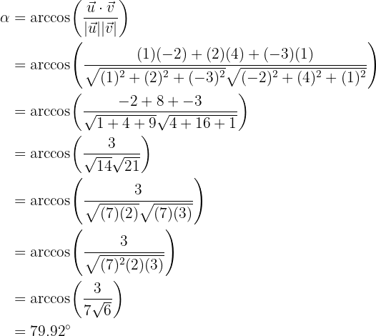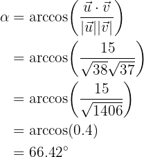 Apliquemos la fórmula que vimos, esto es, usaremos arcocoseno