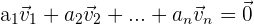 Un conjunto de vectores se dice que son linealmente dependientes si hay una combinación lineal de ellos que es igual al vector cero, sin que sean cero todos los coeficientes de la combinación lineal. Es decir,