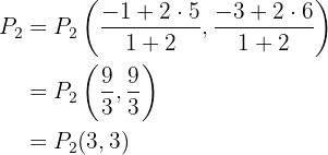 La fórmula que tenemos para puntos medios o puntos que parten un segmento en una razón dada siempre se utiliza con puntos colineales. Por lo tanto, utilizaremos esa fórmula.