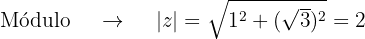 , necesitamos cambiar a su forma polar. Esto la hacemos obteniendo su módulo y argumento
