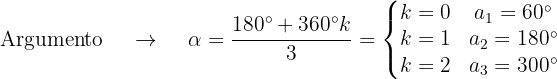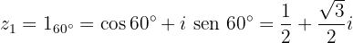 Las raíces de la ecuación son entonces los números con módulo 1 y con los argumentos anteriores, es decir,