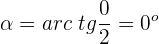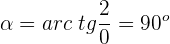 Este resultado no te lo dará la calculadora pues 2/0 no está definido, pero de manera intuitiva se menciona que es infinito y como tan 90 es infinito, entonces se deduce que arc tg de 2/0 es 90 grados, otra manera de deducirlo es geométricamente.