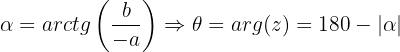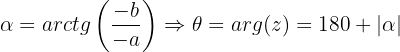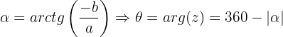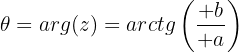 y se calcula mediante las siguientes fórmulas, dependiendo el cuadrante en el que se ubica el número complejo.
