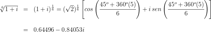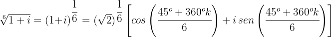 Paso 1. Se calculan el módulo y argumento del número complejo del cual se está extrayendo raíz sexta