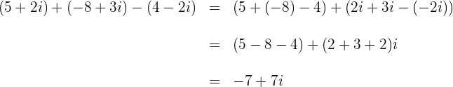 Cuando se tienen suma y resta combinadas de varios números complejos, se suman y/o restan las partes reales con las partes reales y las partes imaginarias con las partes imaginarias.