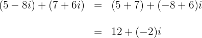 La suma y resta de números complejos también se puede operar como suma y resta de polinomios, ya que los números complejos están expresados de la forma binómica.