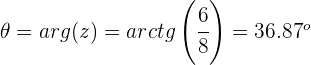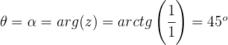 El argumento de un número complejo es el ángulo positivo ( el cual gira en sentido contrario a las manecillas del reloj) que forma el vector con la parte positiva del eje real. Se designa por
