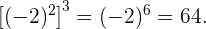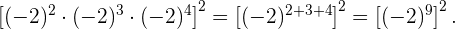 Siguiendo el procedimiento del segundo ejercicio, dejamos la base igual y sumamos las potencias en el corchete: