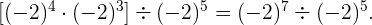 Resolvemos primero la división de potenicas dentro del primer corchete: