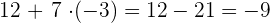 En el bar de la esquina estrenan una nueva cámara de frío. Si la temperatura desciende 3 ºC cada hora una vez conectada la máquina y la temperatura actual es de 12 ºC ¿Cuál será la temperatura dentro de siete horas?