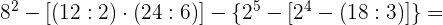 Realizamos la multiplicación, operamos en el paréntesis que está dentro del corchete, de modo que nos volvemos a encontrar con otro paréntesis