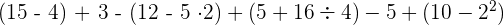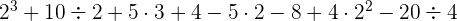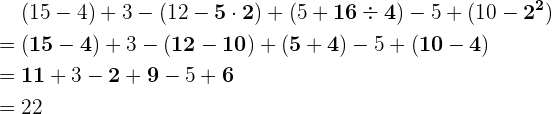 Esta operación incluye todas las operaciones básicas aritméticas, pero no utiliza paréntesis. Así, realizamos primero las potencias, luego las multiplicaciones/divisiones y por último las sumas/restas: