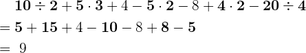 Observemos que implica únicamente operaciones con la misma jerarquía: sumas y restas. Por lo tanto, se realizan de izquierda a derecha, es decir,