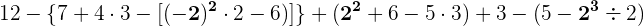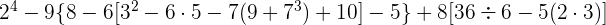 Al igual que en el ejemplo anterior, las llaves tienen la misma jerarquía que los corchetes y los paréntesis. Por lo tanto, las operaciones se realizan de adentro hacia afuera.