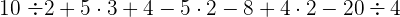 Observemos que tenemos sumas/restas y multiplicaciones/divisiones. Las multiplicaciones/divisiones tienen mayor prioridad, por lo que las realizamos primero