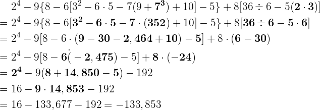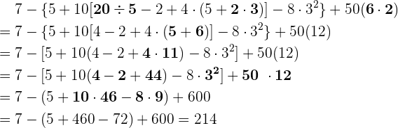 De nuevo, las operaciones dentro de los corchetes, llaves y paréntesis se realizan de adentro hacia afuera.