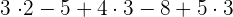 Veamos que esta operación involucra multiplicaciones, sumas y restas. Además, la multiplicación tiene prioridad sobre la suma. Por lo tanto, se realizan primero las multiplicaciones: