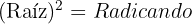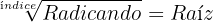 En la raíz cuadrada el índice es 2, aunque en este caso se omite. Consistiría en hallar un número conocido su cuadrado.